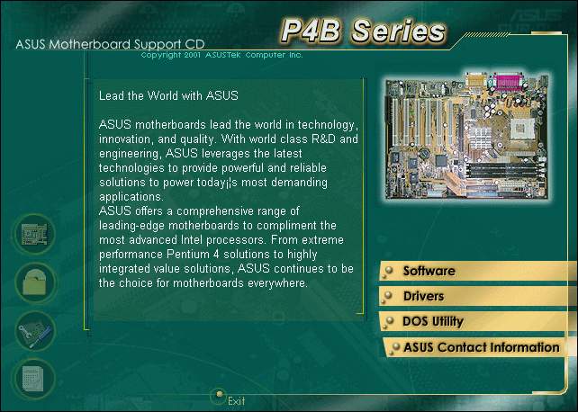 Диск с драйверами тоже необычен — он выгодно отличается от своих предшественников дизайном, а также имеет новую оболочку для инсталляции программ и драйверов, находящихся на нем. Из них можно отметить следующие утилиты: Winbond Voice Edit — с ее помощью мы можем записать свои собственные wav-файлы в EEPROM для реализации новой фирменной технологии POST Reporter — сообщающей о проблемах при загрузке компьютера (по умолчанию в комплекте есть сообщения на 9 языках, в том числе и на русском!), Logo — она реализует вашу фантазию в деле изменения заставок, показываемых при загрузке ( технология MyLogo), AsusUpdate — позволяющая скачать новую версию BIOS из сети и обновить его, не выходя из Windows, а также AsusHotkey — изначально предназначенную для работы с iPanel, но и в ее отсутствие позволяющую выполнять назначенные вами действия сочетанием кнопок клавиатуры. Естественно, на диске есть утилита для мониторинга за состоянием вентиляторов и температур — Asus PCProbe, а также ставший в последнее время привычным набор бесплатных программ — Adobe Acrobat Reader, антивирусная программа PC-Cillin 2000 v. 7.0 от Trend Micro, Power Player SE 5.0, VideoLive Mail 4.0 от CyberLink и программа 3Deep для настройки цветовой гаммы. Неплохо!