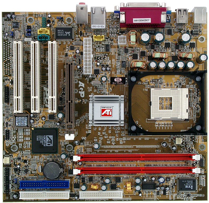 Разновидностей, то есть моделей, обладающих иной функциональностью, но базирующихся на той же PCB, у Axion 9100 IGP не наблюдается, как, впрочем, не наблюдается даже приличной странички самой платы на сайте производителя (и это спустя более 3 месяцев со дня анонса!). В таких условиях нам остается лишь предполагать, что эта модель останется единственной даже после начала реальных поставок  ведь ATI, в отличие от NVIDIA с ее nForce2, намного менее активна на рынке чипсетов и не выпускает вариантов без встроенной графики. Из разведенных, но нераспаянных на плате элементов присутствует слот CNR, но абсолютно никаких выводов мы из этого сделать не можем.