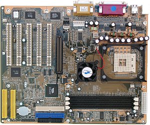 Краткие характеристики платы: разъемы памяти 3 DDR SDRAM; слоты расширения AGP/ 5 PCI; порты ввода/вывода 2 COM/ LPT/ 2 PS/2/ 6 USB 1.1; размеры 305х245 мм.
