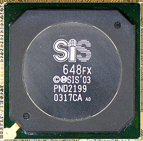 Взятая с сайта SiS картинка неадекватна ситуации :). Во-первых, у SiS648FX поддержка DDR400 абсолютно официальна (в отличие как раз от его предшественника), а во-вторых, единственная реально новая возможность поддержка 800-мегагерцовой процессорной шины на этой диаграмме вообще не отражена. Собственно, только полутора упомянутыми деталями различия между чипсетами и ограничиваются. Можно также заметить, что «официальной парой» нового продукта является южный мост SiS963L, тогда как SiS648 в свое время изображался в паре с полной версией этого моста SiS963 (включающей контроллер FireWire, а потому более дорогой). Данная ситуация как нельзя лучше иллюстрирует произошедшую перемену: SiS648 в момент анонса претендовал на лидерство по скорости и функциональности, SiS648FX выпущен для борьбы в нижнем ценовом сегменте. Ну и традиционно напомним, что по разводке и интерфейсу соединения с северным мостом все последние южные мосты компании взаимозаменяемы, так что при желании никто не мешает использовать на материнской плате любой из них.
