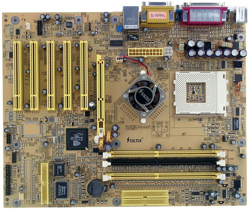 Краткие характеристики платы: разъемы памяти 3 DDR SDRAM; слоты расширения AGP/ 5 PCI; порты ввода/вывода 2 COM/ LPT/ 2 PS/2/ 6 USB 2.0; размеры 305х245 мм.