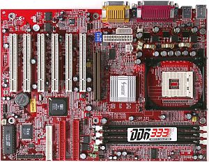Краткие характеристики платы: разъемы памяти — 3 DDR SDRAM; слоты расширения — AGP/ 6 PCI; порты ввода/вывода — 2 COM/ LPT/ 2 PS/2/ 4 USB (хотя чипсет поддерживает все 6); размеры — 305х225 мм.