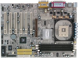 Впервые к нам попала плата от Soltek серебристого цвета, все остальное же у нее достаточно стандартно. Надо отметить, что значительно переработанные со времен P4X266 и P4X266A спецификации чипсета повлекли за собой заметную переделку платы для реализации новых возможностей, так что она сильно отличается по разводке от продуктов на предыдущих чипсетах VIA.