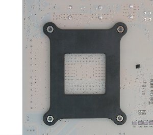На обратной стороне платы установлена защитная пластина для предотвращения изгиба текстолита при установке массивных кулеров.