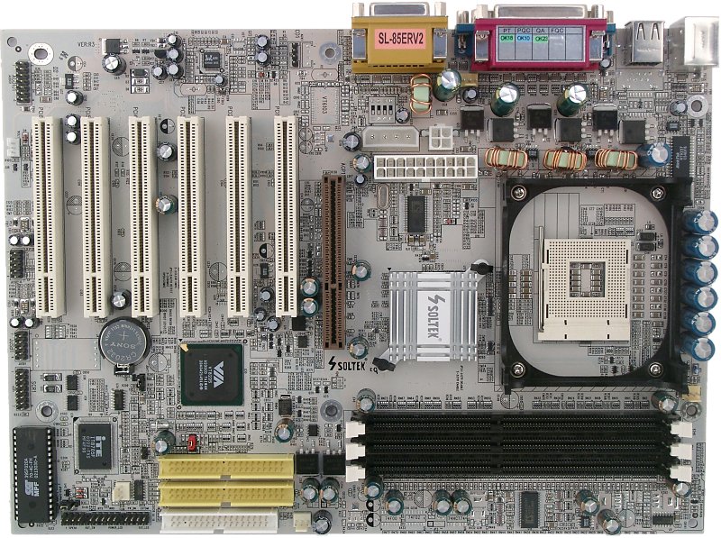 Плата практически идентична предыдущей модели на том же чипсете 85ERV, и отличается только степпингом чипсета и «обвязкой» разъемов памяти, что и позволяет корректно (хотя не слишком успешно) работать с памятью PC3200(DDR400).