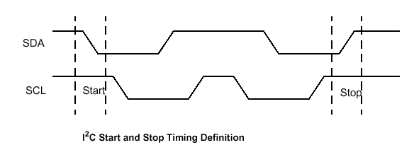 Команда начала (или команда старта, START) инициируется по отрицательному перепаду импульса SDA (по срезу) в момент, когда системный синхросигнал имеет устойчивый высокий уровень (находится в активном состоянии). Вообще говоря, любая команда должна сопровождаться командой старта. Микросхема EEPROM постоянно осуществляет мониторинг линий SDA и SCL, и не входит а фазу ответа пока команда START является активной.