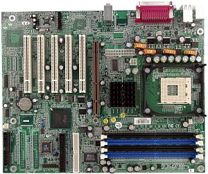 Краткие характеристики платы: разъемы памяти 4 DDR SDRAM; слоты расширения AGP Pro/ 5 PCI; порты ввода/вывода 2 COM/ LPT/ 2 PS/2/ 6 USB 2.0; размеры 305х245 мм.