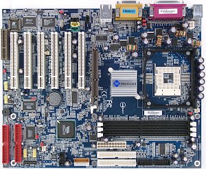 Краткие характеристики платы: разъемы памяти 3 DDR SDRAM; слоты расширения AGP/ 6 PCI/ CNR; порты ввода/вывода 2 COM/ LPT/ 2 PS/2/ 10 USB 2.0; размеры 305х245 мм.