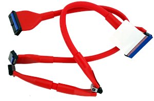 - Кабели: один ATA66/100/133 и шлейф для подключения дисковода (оба убраны в красный кембрик для улучшения вентиляции в корпусе);