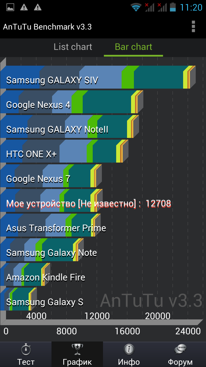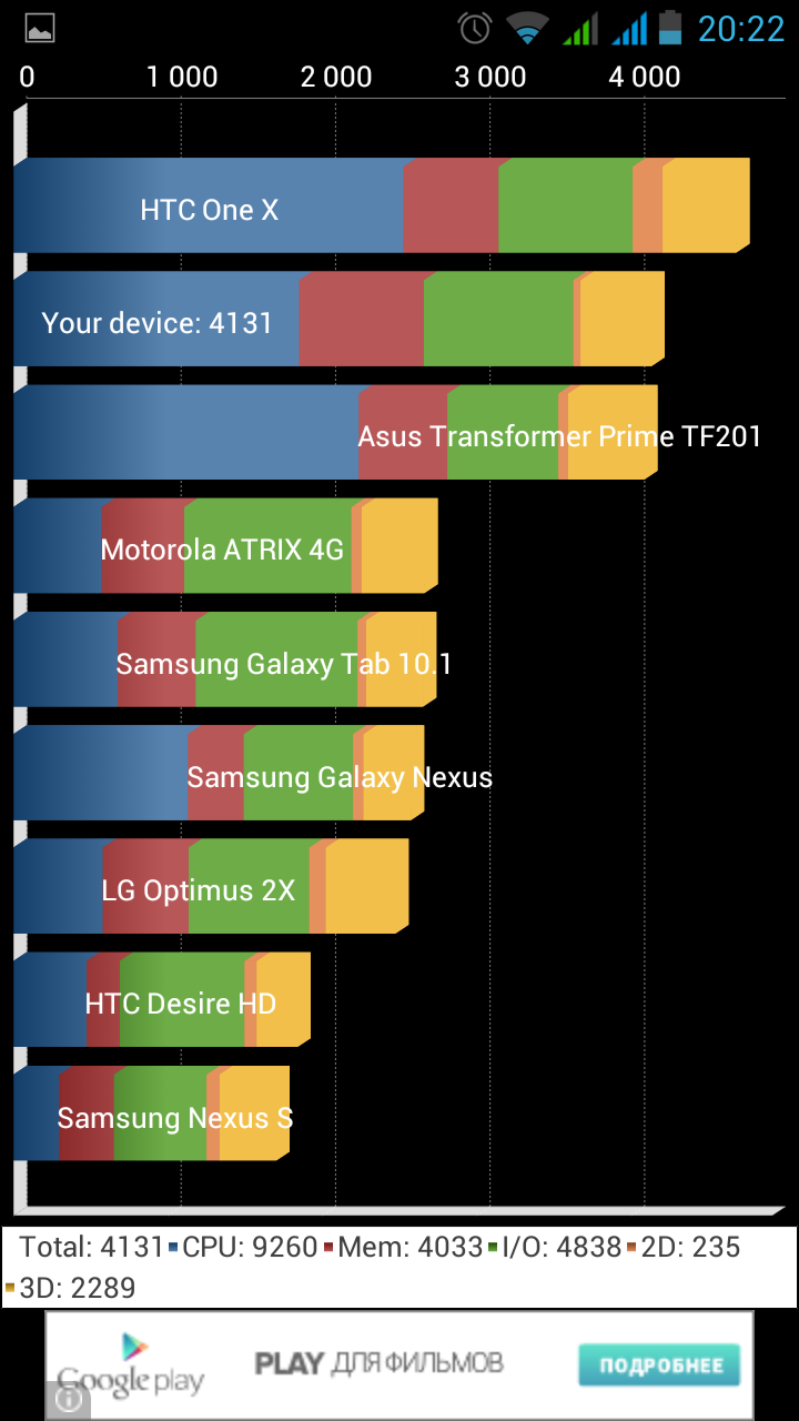 Все прочие программы для тестирования производительности должным образом оценили как наличие четырех ядер, так и мощь графического процессора. Смартфон Fly IQ451, а вместе с ним и платформа MT6589, заняли соответствующее им место в табели о рангах, значительно опередив соперников на основе куда менее мощных SoC. В некоторых тестах преимущество новинки оказалось двукратным.