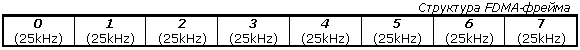 В каждом из частотных каналов, которому присвоен номер (N) и который занимает полосу 200кГц, организуются восемь каналов с временным разделением (временные каналы с номерами от 0 до 7), или восемь канальных интервалов.