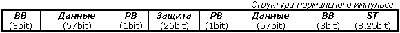 Рассмотрим формат нормального стандартного импульса. Из него видно, что не все разряды несут полезную информацию: здесь в середине импульса располагается обучающая последовательность из 26 двоичных разрядов для защиты сигнала от помех многолучевого распространения. Это - одна из восьми специальных легко распознаваемых последовательностей, по которой принятые разряды правильно располагаются во времени. Такая последовательность ограждается одноразрядными указателями (PB - Point Bit), а с обеих сторон этой настроечной последовательности располагается полезная кодированная информация в виде двух блоков по 57 двоичных разрядов, ограждаемых, в свою очередь, граничными разрядами (BB - Border Bit) - по 3бит с каждой стороны. Таким образом, импульс переносит 148бит данных, которые занимают 546.12мкс временной интервал. К этому времени добавляется еще промежуток, равный 30.44мкс защитного времени (ST - Shield Time), в течение которого передатчик "молчит". По продолжительности этот промежуток соответствует времени передачи 8.25 разряда, но передачи в это время не происходит.