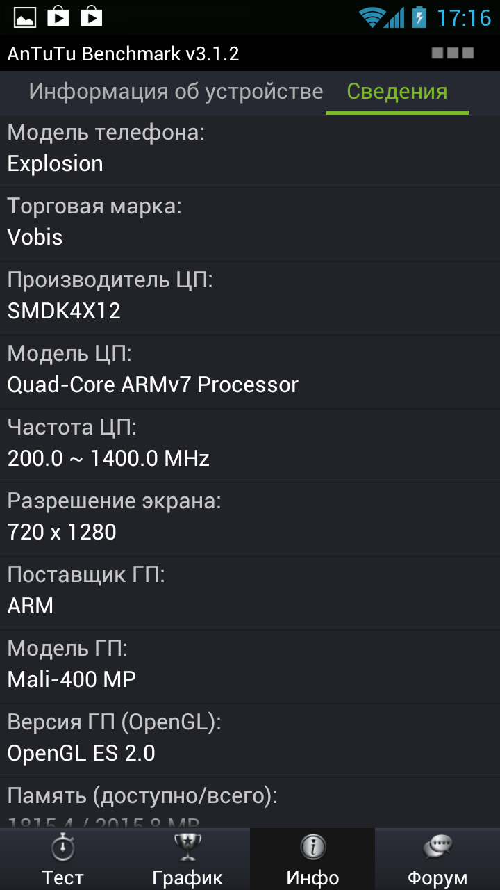 Осталось посмотреть еще на несколько результатов тестов производительности и проверить, как Highscreen Explosion справляется с воспроизведением видео.