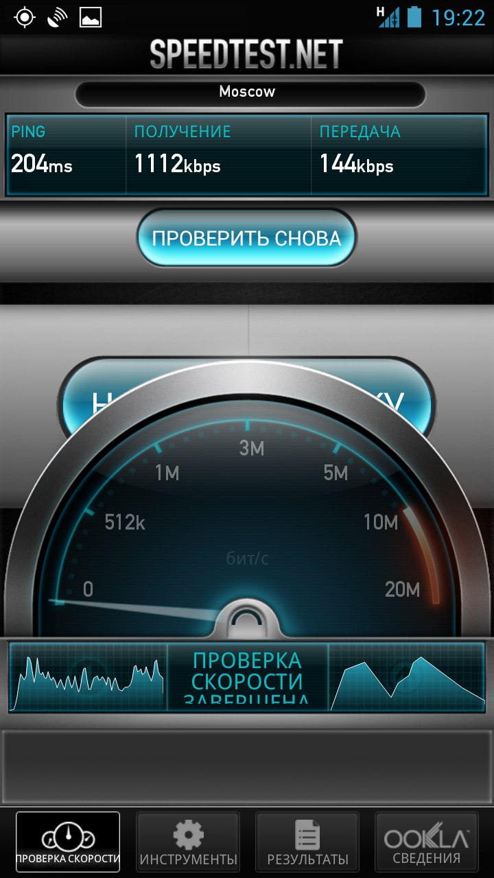 Зато они есть к работе модуля Wi-Fi. При его сравнении с модулем, встроенным в Samsung Galaxy S 2, выяснилось, что уровень приема сигнала сети Wi-Fi у Highscreen Explosion хуже, чем у смартфона корейской компании. Это было заметно невооруженным глазом по значку сети, который показывал стабильно на одно деление меньше; это стало более заметно при использовании специальной программы для проверки сигнала беспроводной сети. Непосредственно у роутера TP-Link WR1043ND разница в уровнях сигнала составила 4 дБм, при удалении от него она возросла до 8 дБм не в пользу Highscreen Explosion, если же нечаянно закрыть рукой антенну в нижней части смартфона, то разница увеличивается до 13 дБм. Насколько это критично при работе в помещении? Наверняка не очень, но факт налицо — при значительном удалении от беспроводной точки доступа Highscreen Explosion раньше потеряет сигнал сети. Как и Huawei Ascend D1 Quad XL, герой обзора не захотел подключаться к роутеру в режиме работы 802.11n, хотя и обнаруживал сеть. Другие устройства, например Samsung Galaxy S 2 или iPad mini, успешно к ней подключились. Проблема исчезла после изменения режима работы роутера на 802.11b/g, в этом случае скорость обмена данными между двумя устройствами составила 24 Мбит/с.