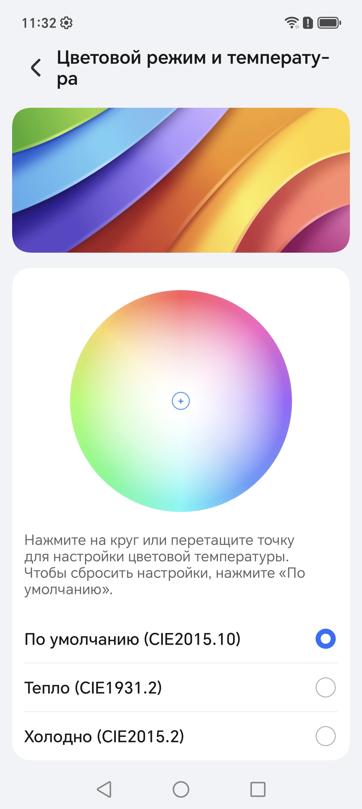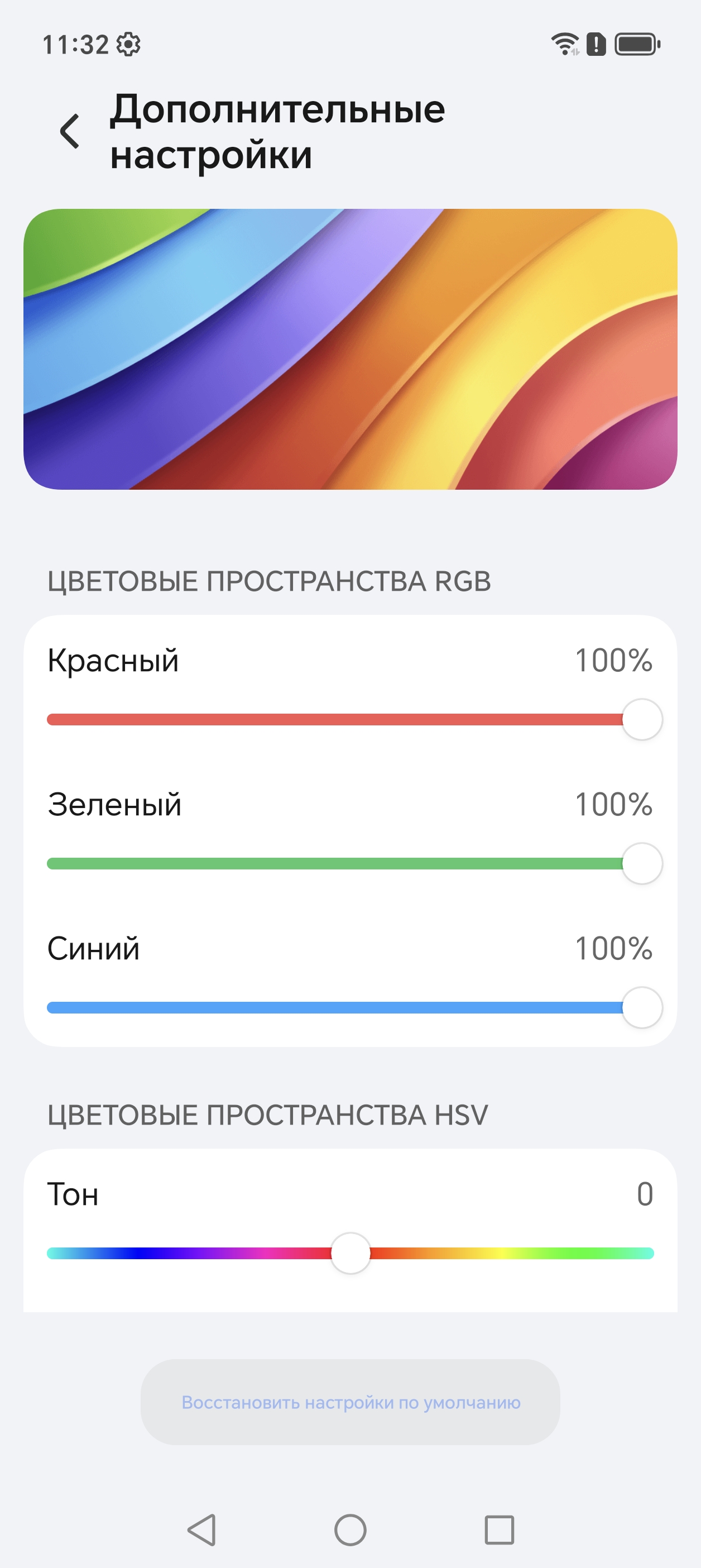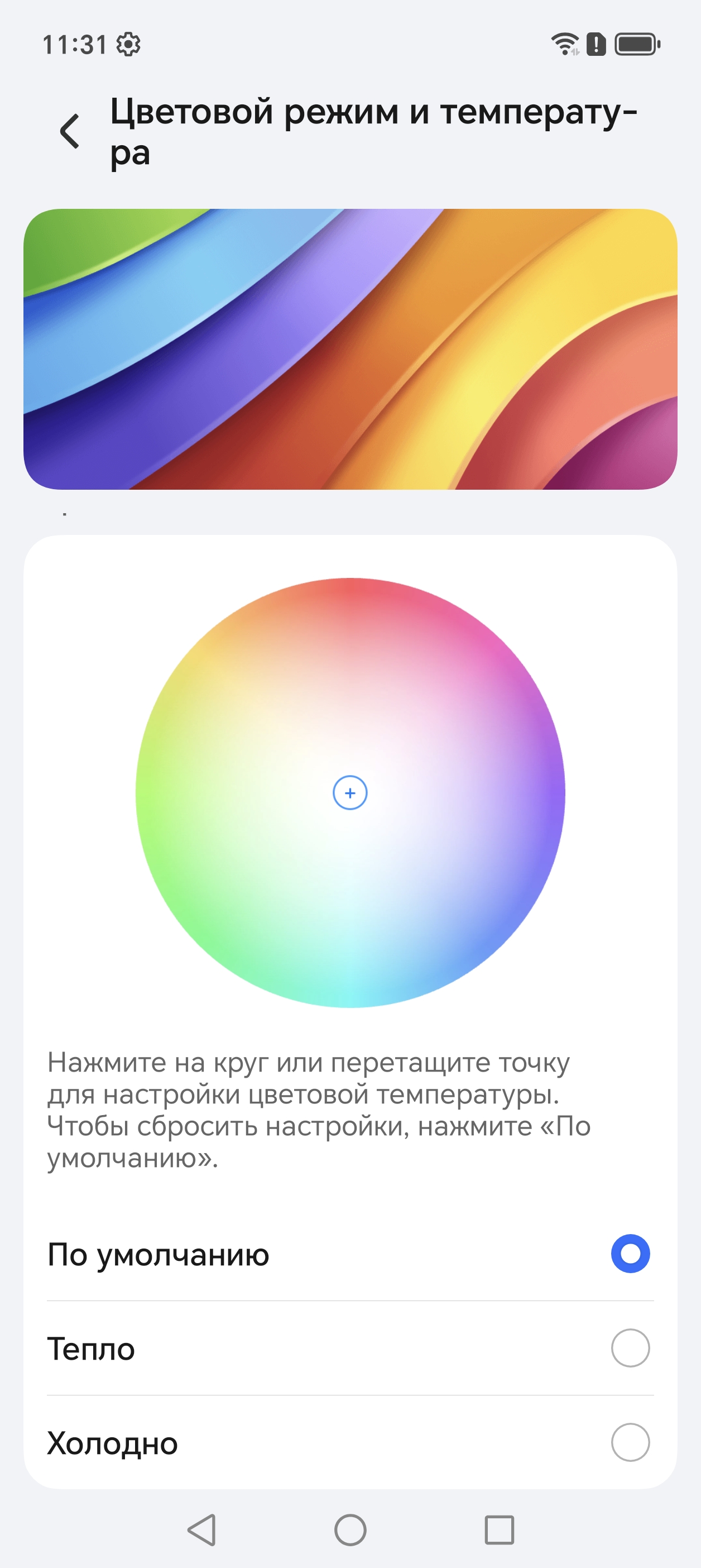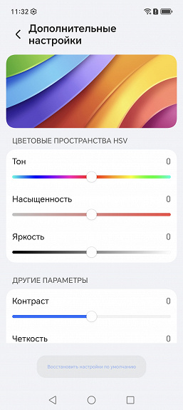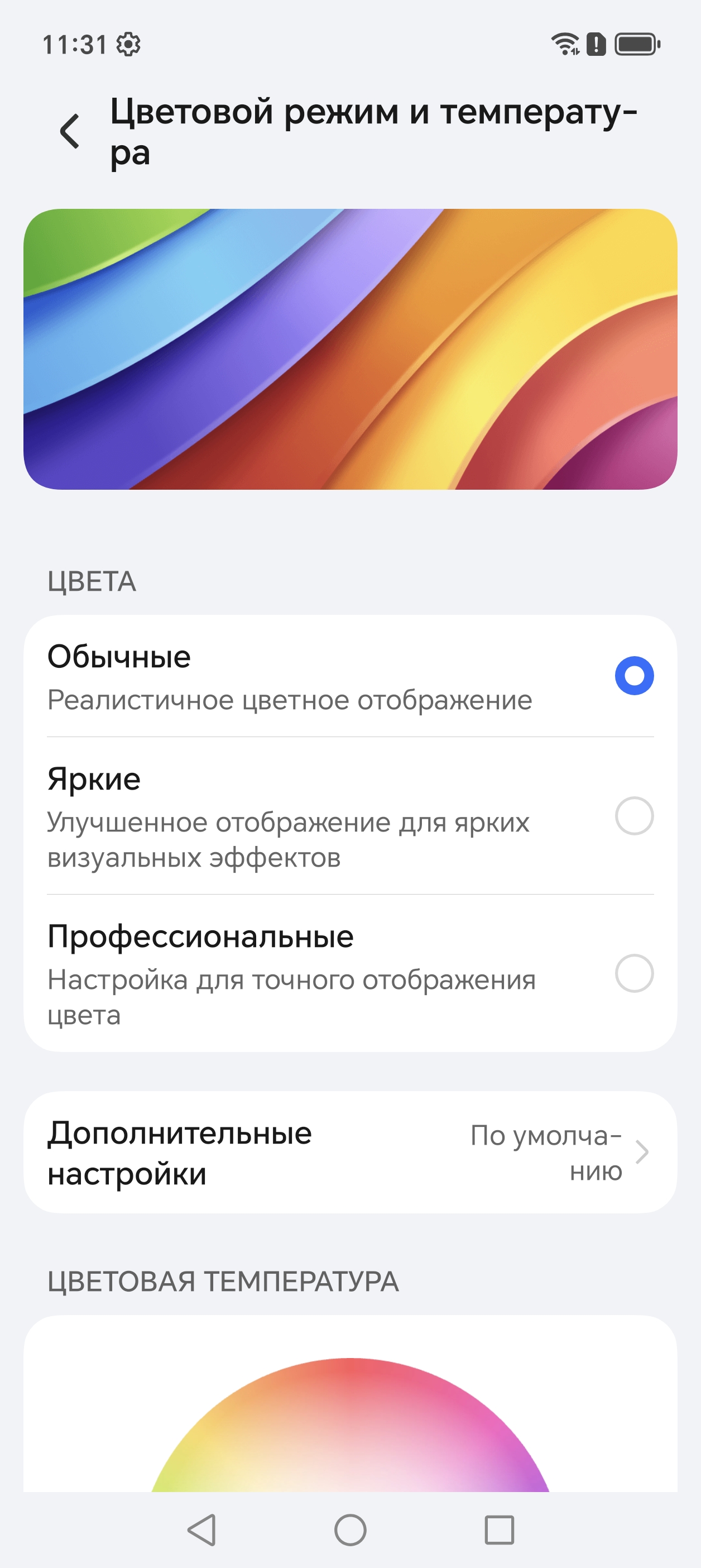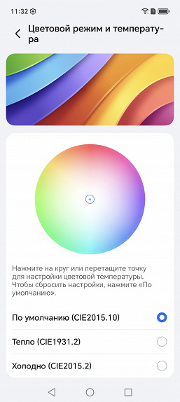Дополнительно есть возможность скорректировать цветовой баланс с помощью выбора профиля цветовой температуры или регулировки оттенка на цветовом круге, а также многочисленными настройками, перейдя на страницу Дополнительные настройки.