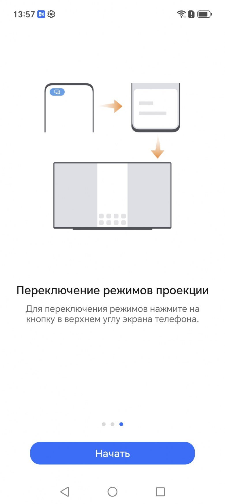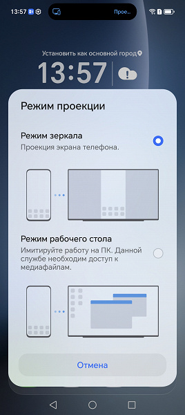 Во втором случае при портретной ориентации экрана смартфона картинка на экране ТВ выводится вписанной по высоте и с широкими черными полями по бокам, а при ландшафтной — вписанной по ширине с узкими черными полями сверху и снизу. Вывода точка в точку в обоих вариантах нет.