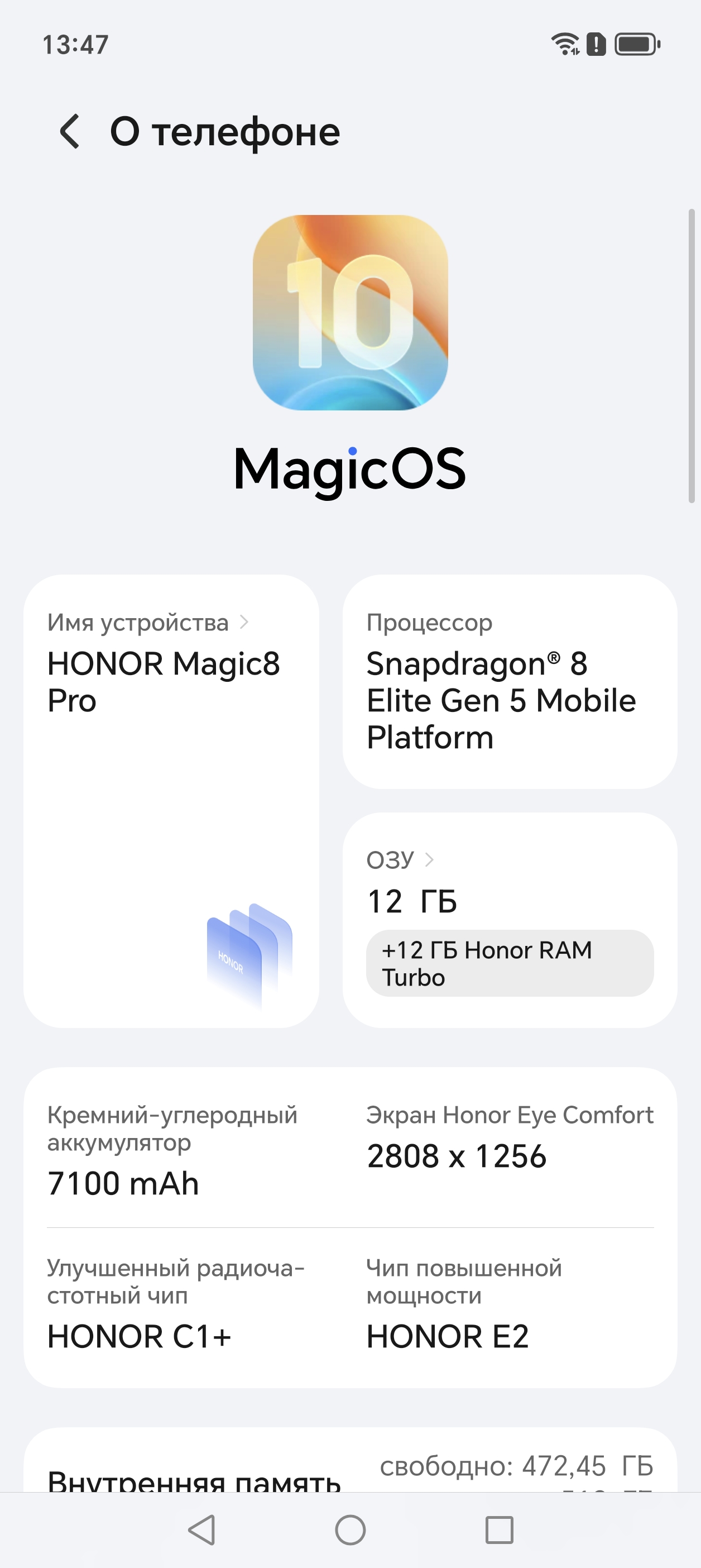 - Операционная система Android 16, MagicOS 10