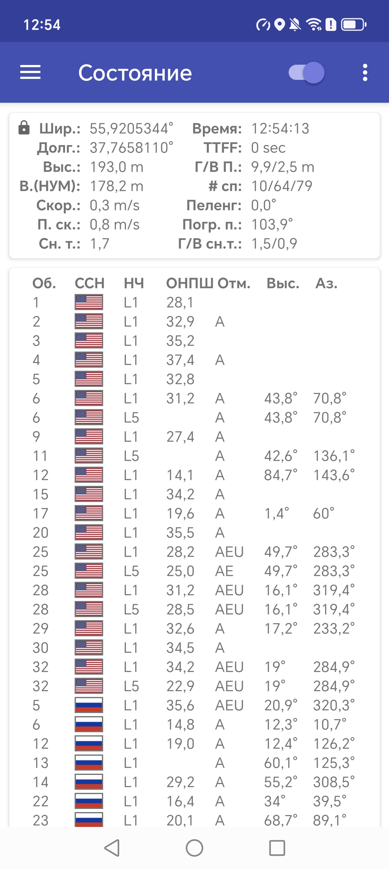 Двухканальный модуль спутниковой навигации работает с GPS (L1+L5), а также Глонасс, BeiDou (B1I+B1C+B2a+B2b), Galileo (E1+E5a+E5b) и QZSS (L1 + L5). Первые спутники при холодном старте обнаруживаются быстро, точность позиционирования не вызывает претензий.