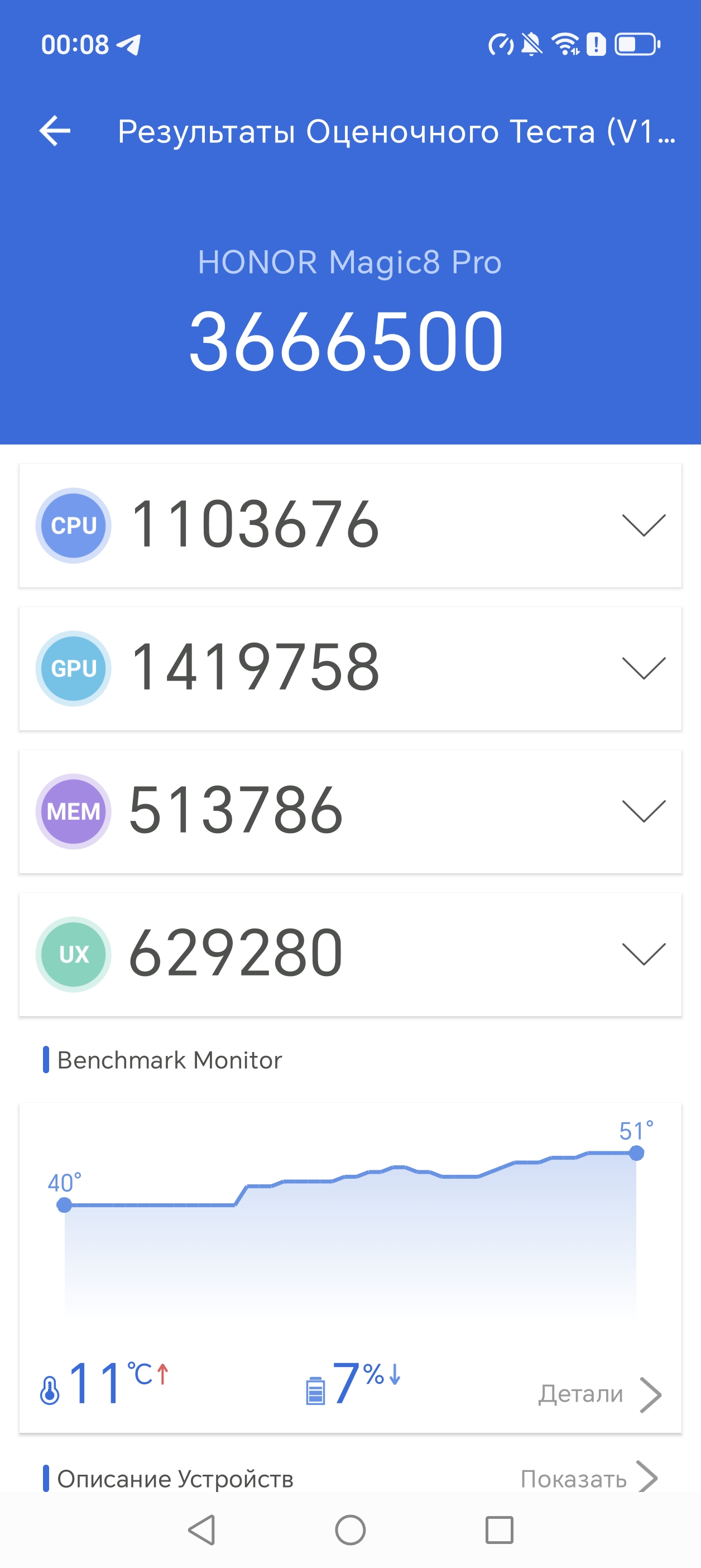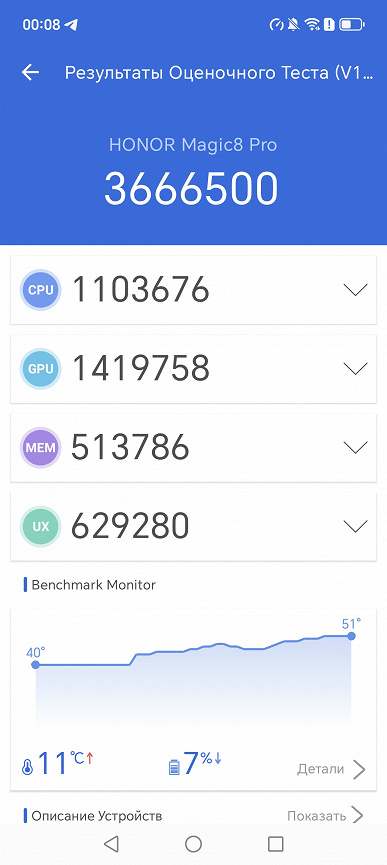 Honor Magic8 Pro — это по всем параметрам флагманский смартфон с топовыми возможностями, с флагманской SoC Qualcomm, с отличным OLED-экраном, полным набором сетевых модулей, и, конечно, высоким качеством фотосъемки на основную и зум-камеру. Он подойдет не каждому из-за размеров, веса и огромной торчащей сзади шайбы, которая портит впечатление от дизайна, но к техническим характеристикам претензий нет. Смартфон уже продается в России, крупные торговые сети предлагают его за 120 тысяч рублей.