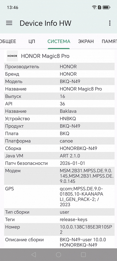 Основные характеристики Honor Magic8 Pro (модель BKQ-N49)