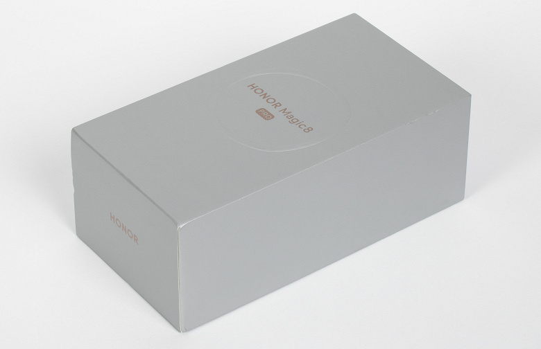 Смартфон Honor Magic8 Pro поставляется в картонной коробке стандартной формы с лаконичным стильным оформлением.