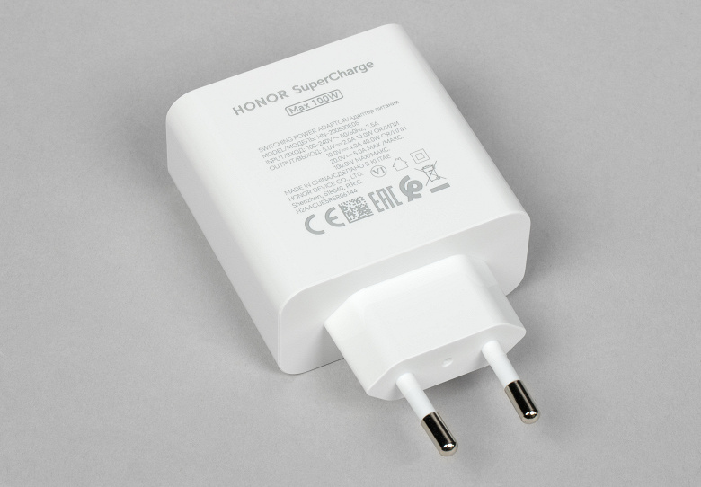 Комплект аксессуаров включает соединительный кабель, защитный чехол и зарядное устройство с максимальной выходной мощностью 100 Вт (с разъемом USB-A).
