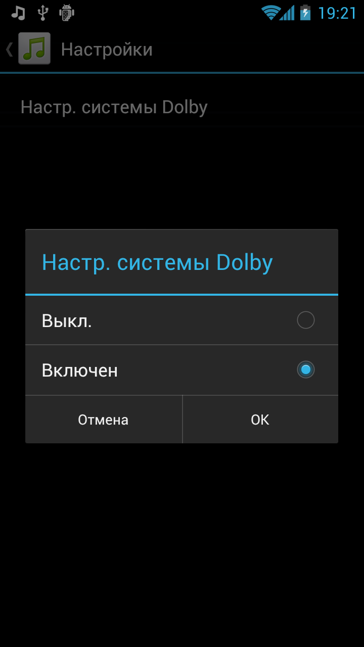Поддержка технологии Dolby Digital Plus мало что дает при воспроизведении музыки через динамик коммуникатора, лишь повышается громкость и усиливаются нижние частоты. При прослушивании через наушники ее активация прибавляет некоторой «объемности» звуку, но, судя по всему, опять же за счет увеличения мощности нижних частот и смешения сигналов из обоих стереоканалов. Очевидно, что основная задача этой технологии — поддержка воспроизведения многоканального звука через MHL-кабель на соответствующей по возможностям аудио- и видеоаппаратуре. Вообще же, качество аудиовыхода для наушников замечательное и без дополнительных «улучшателей», мощность усилителя также высокая.