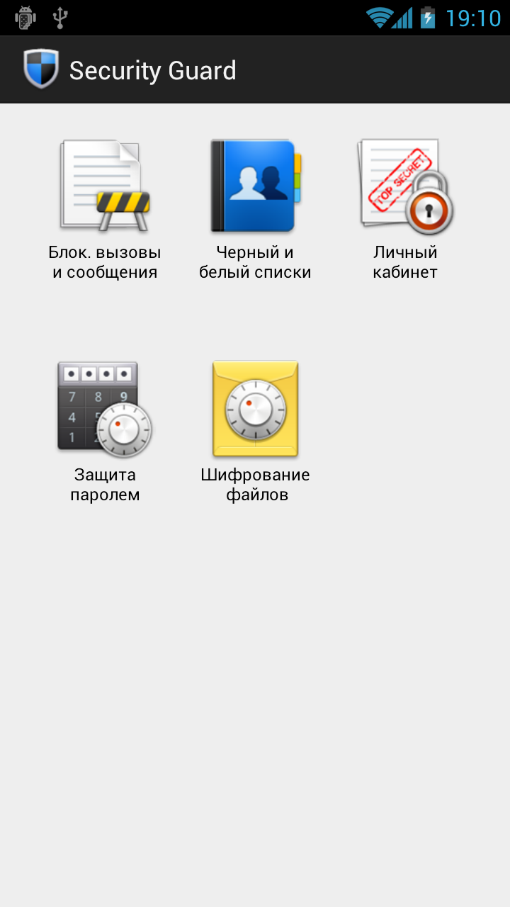 Набор утилит под названием Security Guard содержит инструменты для ведения черного и белого списков абонентов, блокировки вызовов и сообщений, блокировки сайтов, хранения различных данных в защищенной зоне и шифрования файлов.