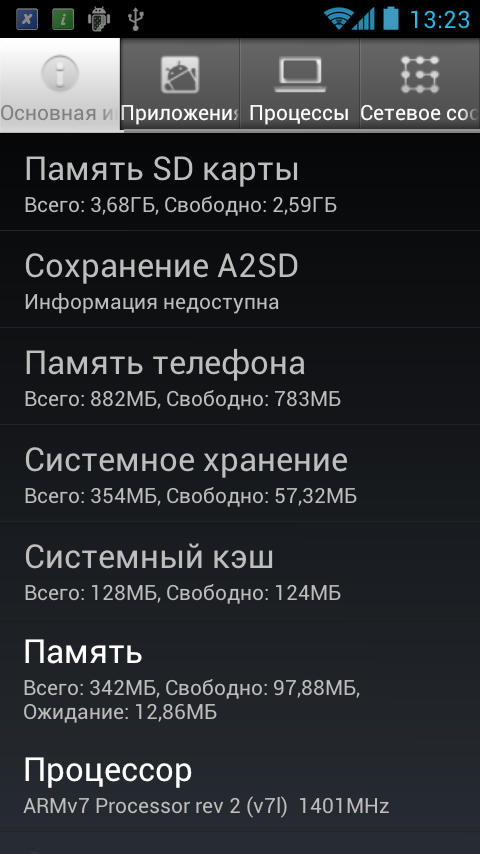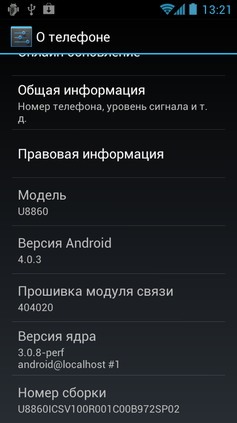 - Операционная система Android 4.0.3 (Ice Cream Sandwich);
