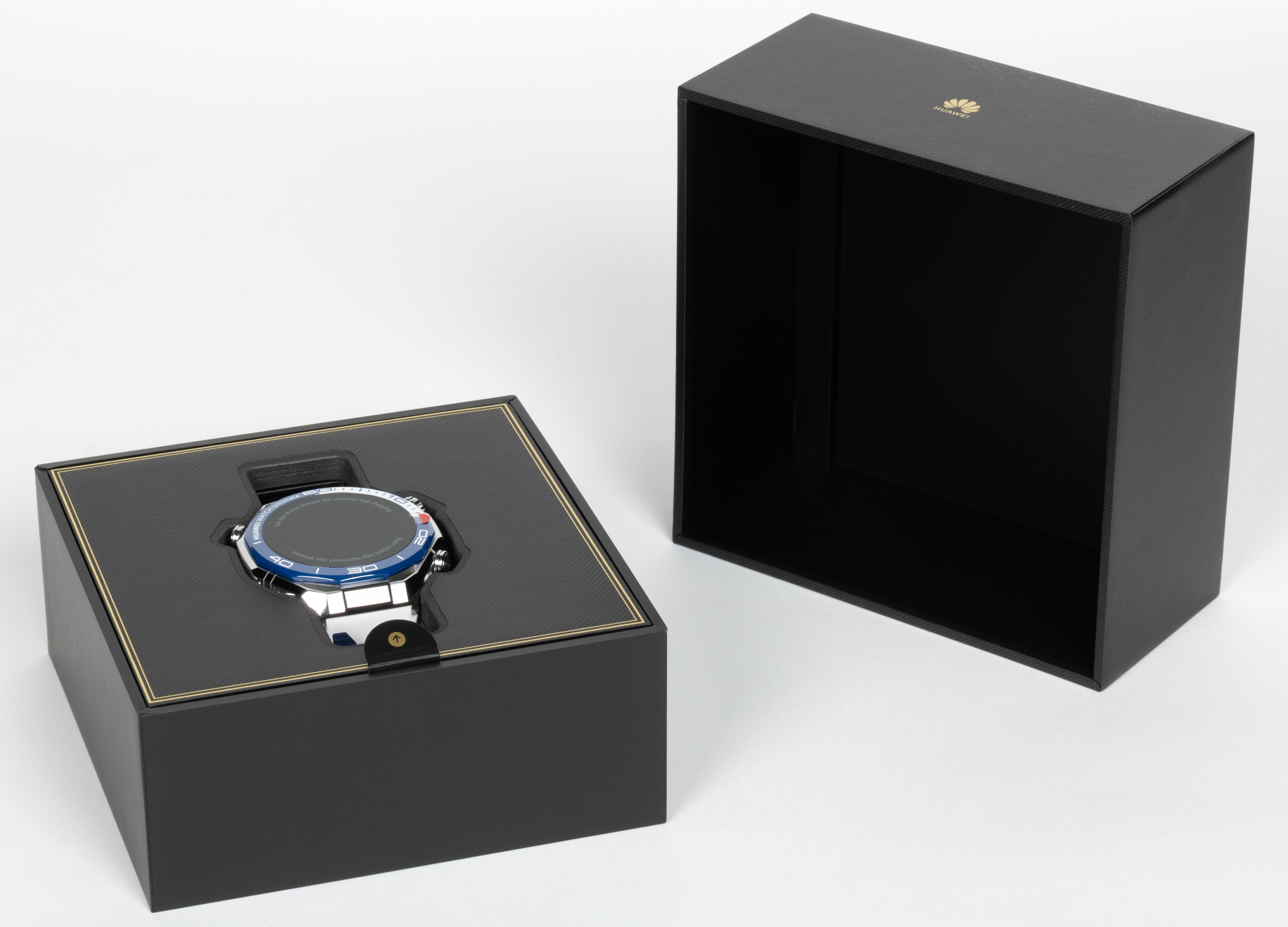 Коробка Watch Ultimate 2, как и у предшественника, выполнена в благородном черном цвете и выглядит подчеркнуто крупнее, чем у более доступных моделей.