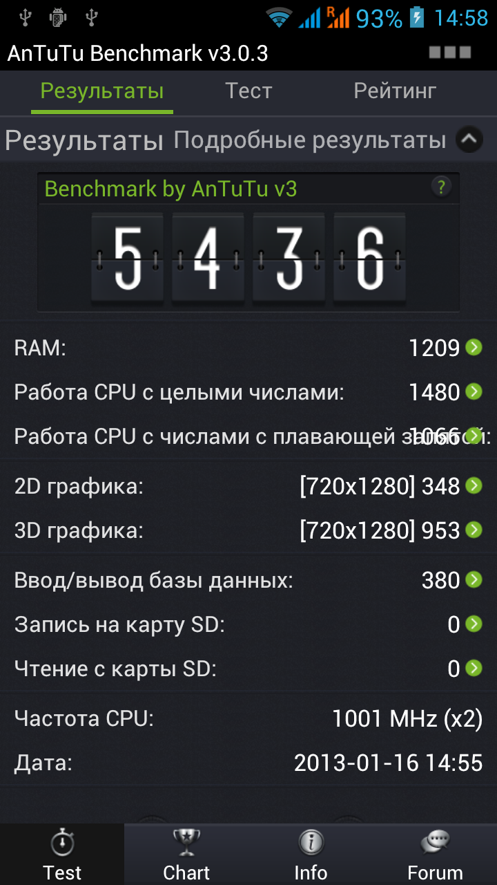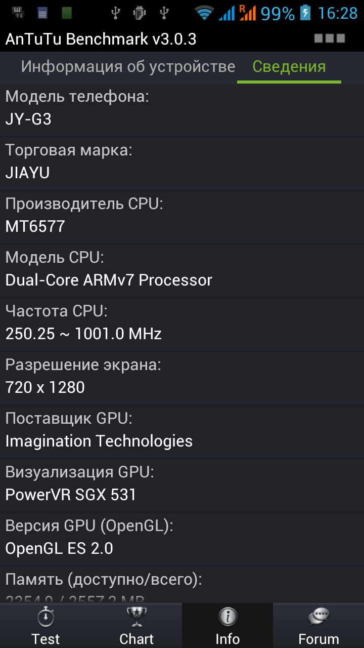 Возможности процессора MediaTek MTK6577 нам уже хорошо известны; вместе со своим младшим «братом» — MTK6575 — они прочно обосновались в сегменте SoC для бюджетных смартфонов, которые в больших количествах стали появляться на рынке, а некоторые из них успели побывать в нашей редакции. Сочетание чипа MTK6577, оперативной памяти 1 ГБ и дисплея c разрешением 720×1280 пикселей с точки зрения производительности мы исследовали в обзоре iconBIT NetTAB Mercury X, так что ожидать каких-либо откровений в этом плане от Jiayu G3 не приходится, а его возможности легко предсказать. Однако проверить смартфон в тестах производительности из нашего традиционного набора можно и нужно, дабы убедиться в прогнозах.
