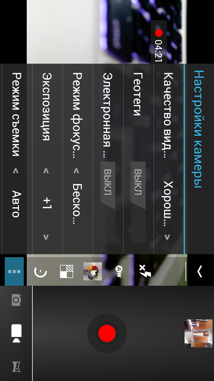 Настроек у камеры великое множество, все их описывать тут нет смысла. Стоит упомянуть, однако, что список режимов работы камеры содержит 4 пункта: фотосъемка, видеосъемка, панорамная съемка и панорамная макросъемка.
