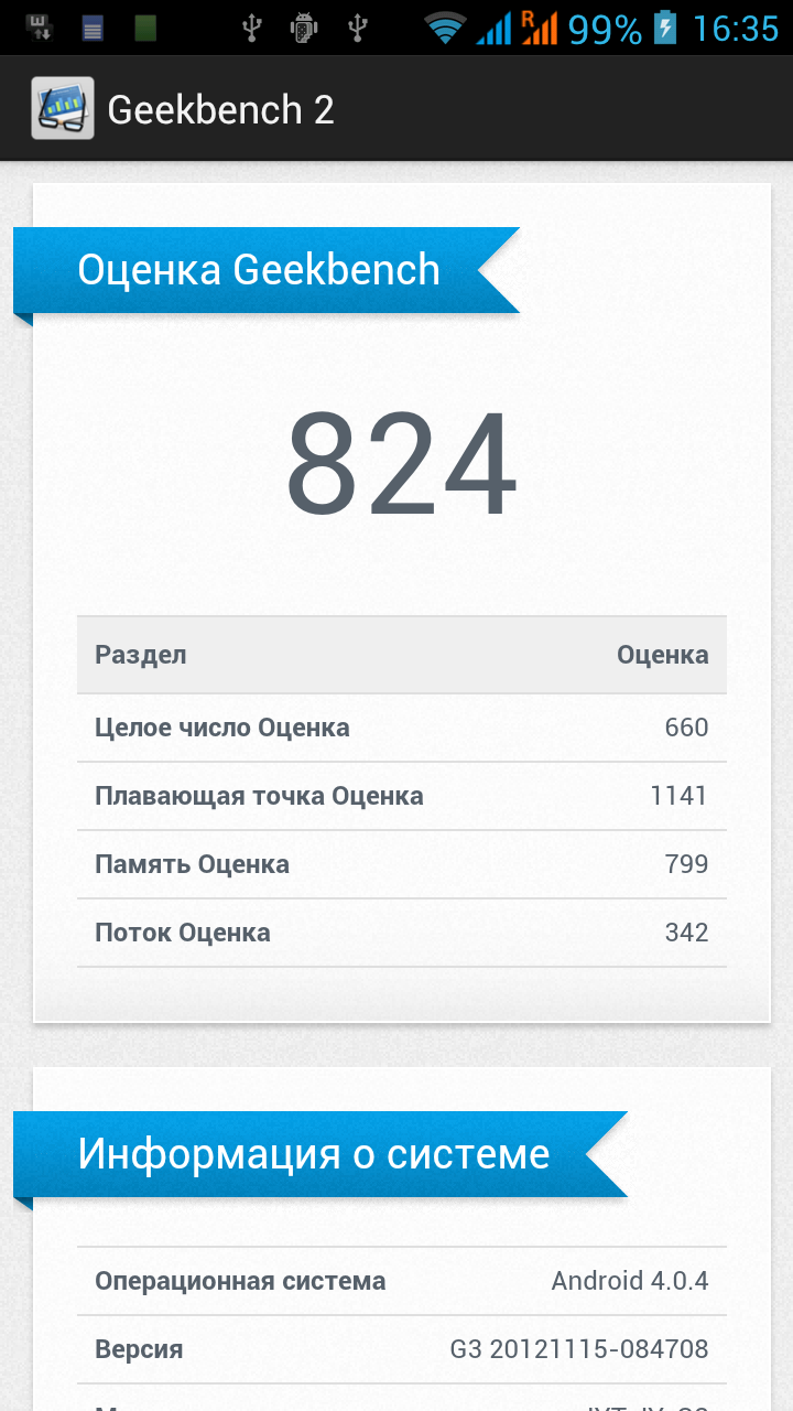 - Операционная система Android 4.0.4 (Ice Cream Sandwich);