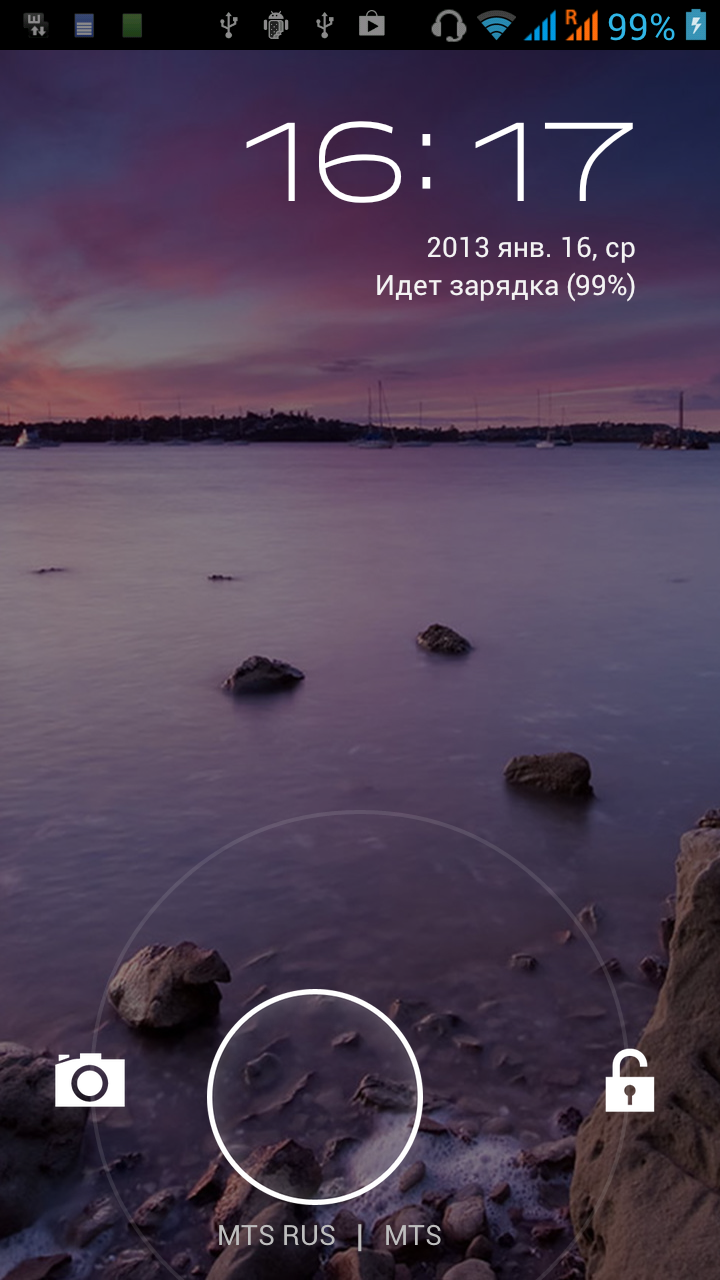 С экрана блокировки системы можно попасть в программу управления камерой или на основной экран. Какие-либо нестандартные иконки или виджеты на его пяти вкладках отсутствуют.