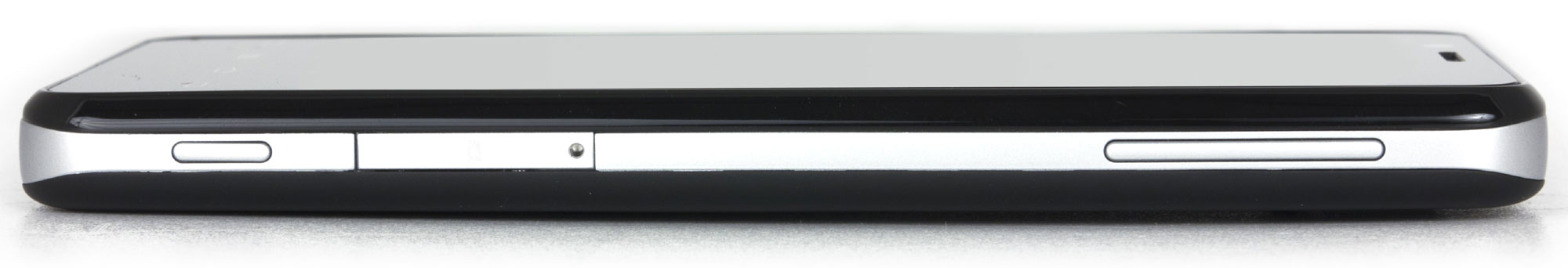 Боковые грани свободны от каких бы то ни было разъемов и кнопок, за исключением качельки регулировки громкости.