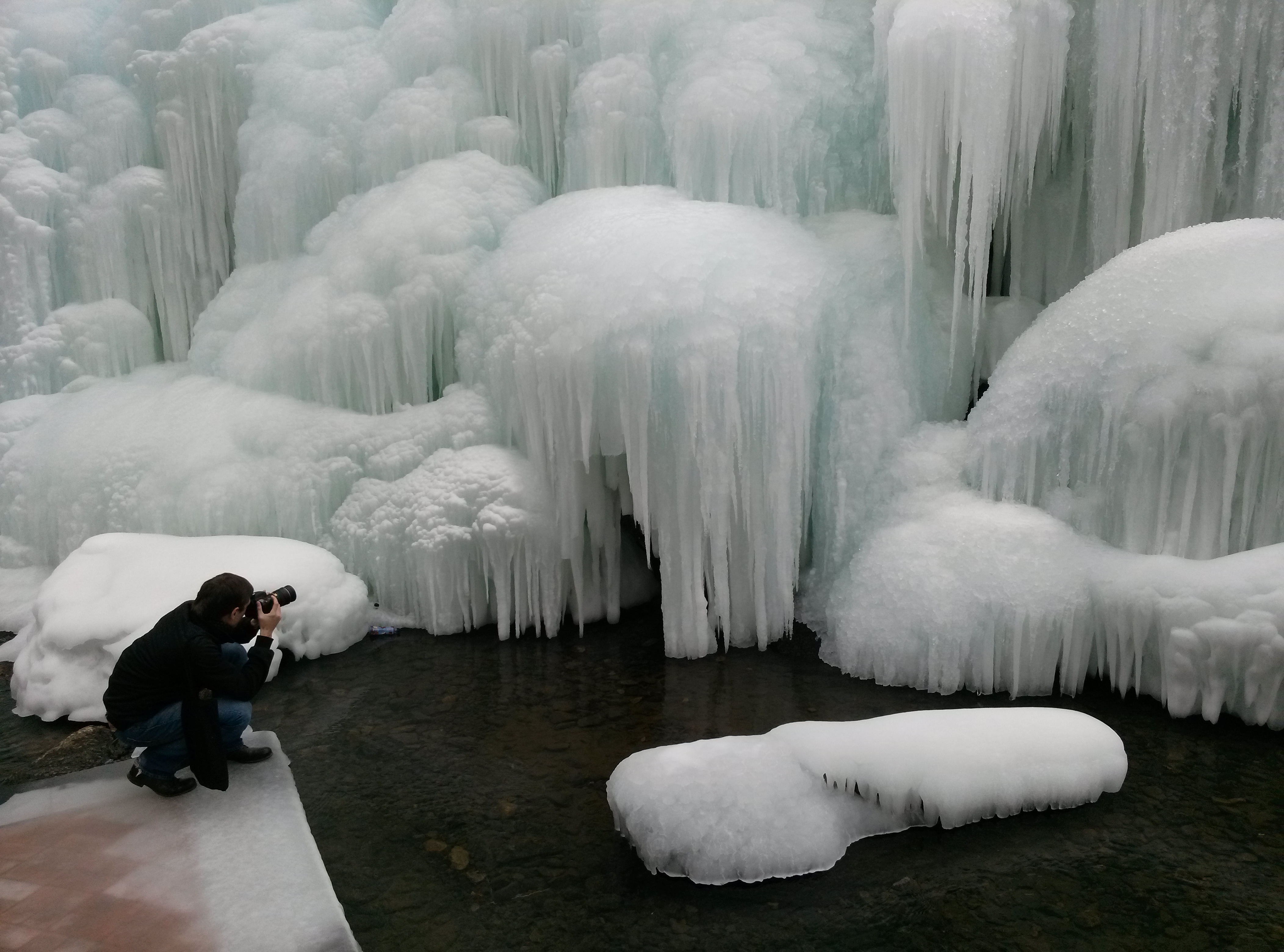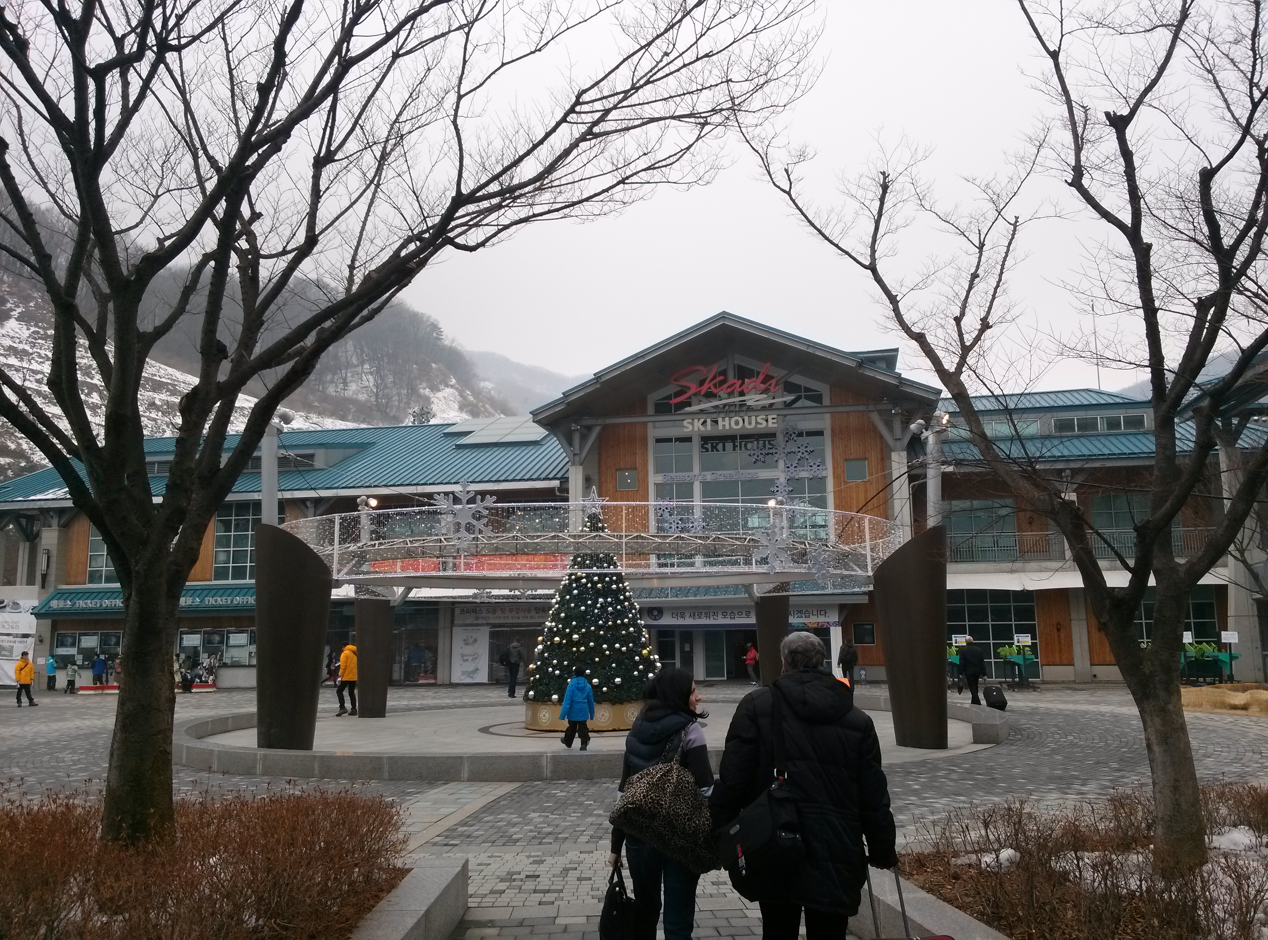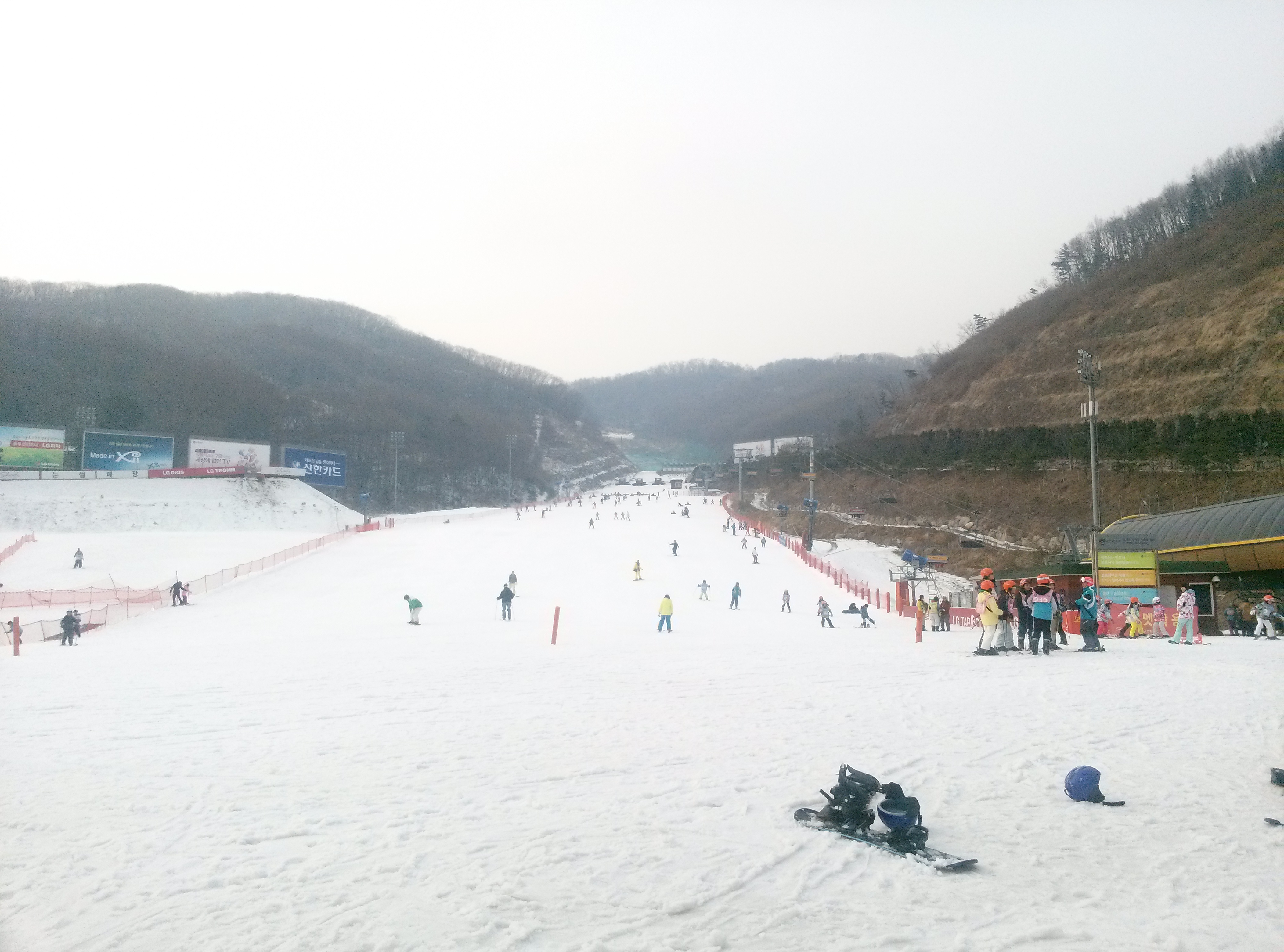 Грех было не испробовать и функцию панорамной съемки при наличии столь впечатляющих пейзажей. На снимке: фабрика LG — это не просто фабрика, это целый фабричный многокилометровый городок с многочисленными постройками различного назначения вплоть до мостов и путепроводов. На втором снимке изображена искусственная ледяная инсталляция в центре собственного горнолыжного курорта LG, воздвигнутого компанией всего в часе езды от Сеула — необыкновенно красивое место в горах.