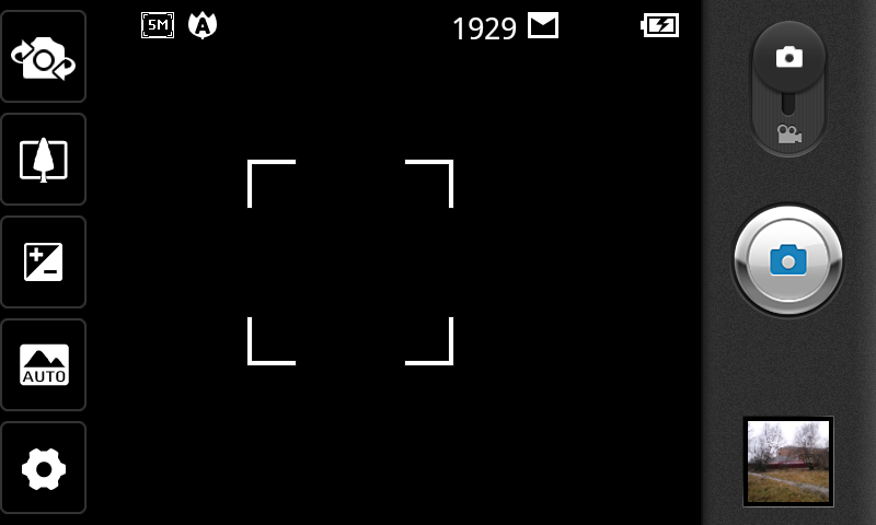 Интерфейс программы управления камерой во многом схож со штатным аналогом, встроенным в систему Android. По правому краю окна располагаются основные элементы управления камерой: захват кадра, смена режима съёмки с фото на видео, эскизы фотографий. Слева находятся значки настроек: переключение между камерами, разрешение съёмки, баланс белого, коррекция экспозиции, сюжеты съёмки и кнопка вызова дополнительного меню настроек. В нём, в свою очередь, имеются следующие пункты: система фокусировки, чувствительность ISO, баланс белого, цветовые эффекты, таймер и привязка снимков к географическим координатам.