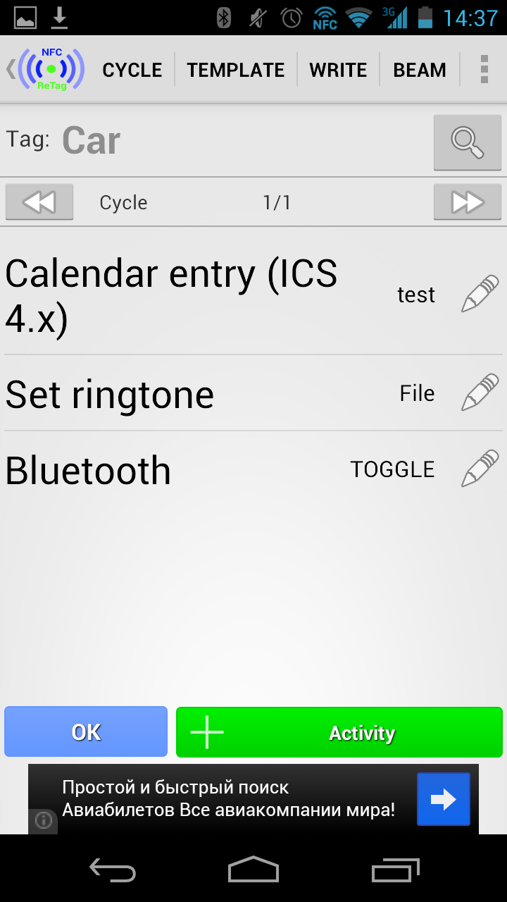 Напомним, что в настоящий момент чтение метки осуществляется только при разблокированном аппарате. Так что сценарий «пришел домой, положил телефон на тумбочку — автоматически переключил профиль, отключил звонок и Bluetooth, настроил будильник» потребует от пользователя некоторых действий. Такое поведение все-таки немного ограничивает возможности программ.