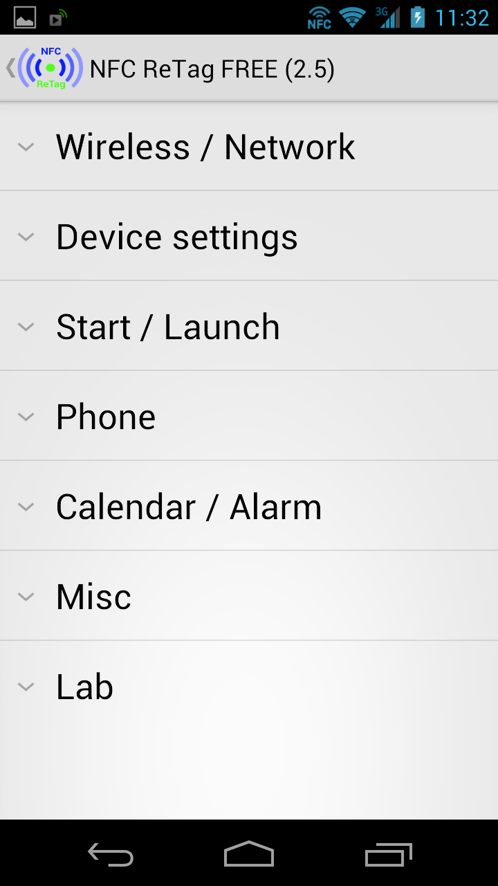 - NFC ReTAG Free: работа с любыми метками, управление интерфейсами, звуком и экраном, запуск программ, установка будильника и событий календаря.