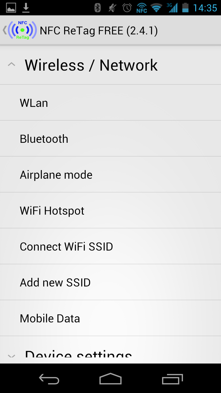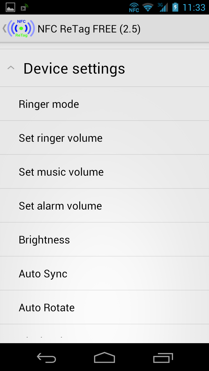 - NFC Task Launcher: кроме меток NFC может активировать настройки по подключению к Bluetooth или Wi-Fi, среди действий есть переключение режимов, интерфейсов, громкости и настроек экрана, публикации в социальных сетях, отправка e-mail и SMS, запуск приложений, открытие страниц в браузере, управление медиаплеером, настройка будильника, телефонный звонок.