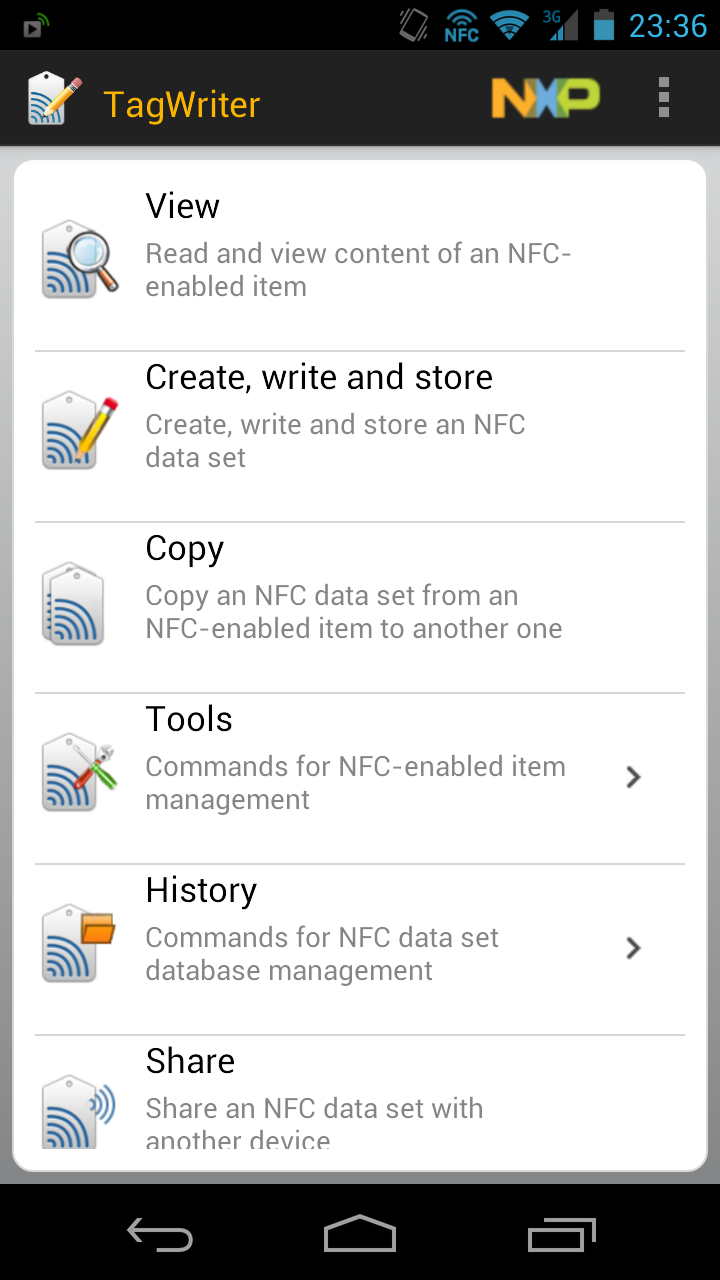 - NFC Actions: возможность работы с облачным сервисом для хранения действий меток, запуск приложений, все традиционные для NDEF действия и несколько дополнительных (включение Wi-Fi, фонарика и т. п.);