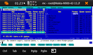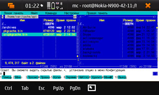Приятны некоторые возможности таких аппаратов: установил поддержку протокола — и радуйся. На смартфонах S60 такие дела не удаются. Например, поддержка соединения по SSH. Здесь всё просто: ставим, соединяемся по WiFi с компьютера, и что угодно берём или кладём практически в любое место на N900.