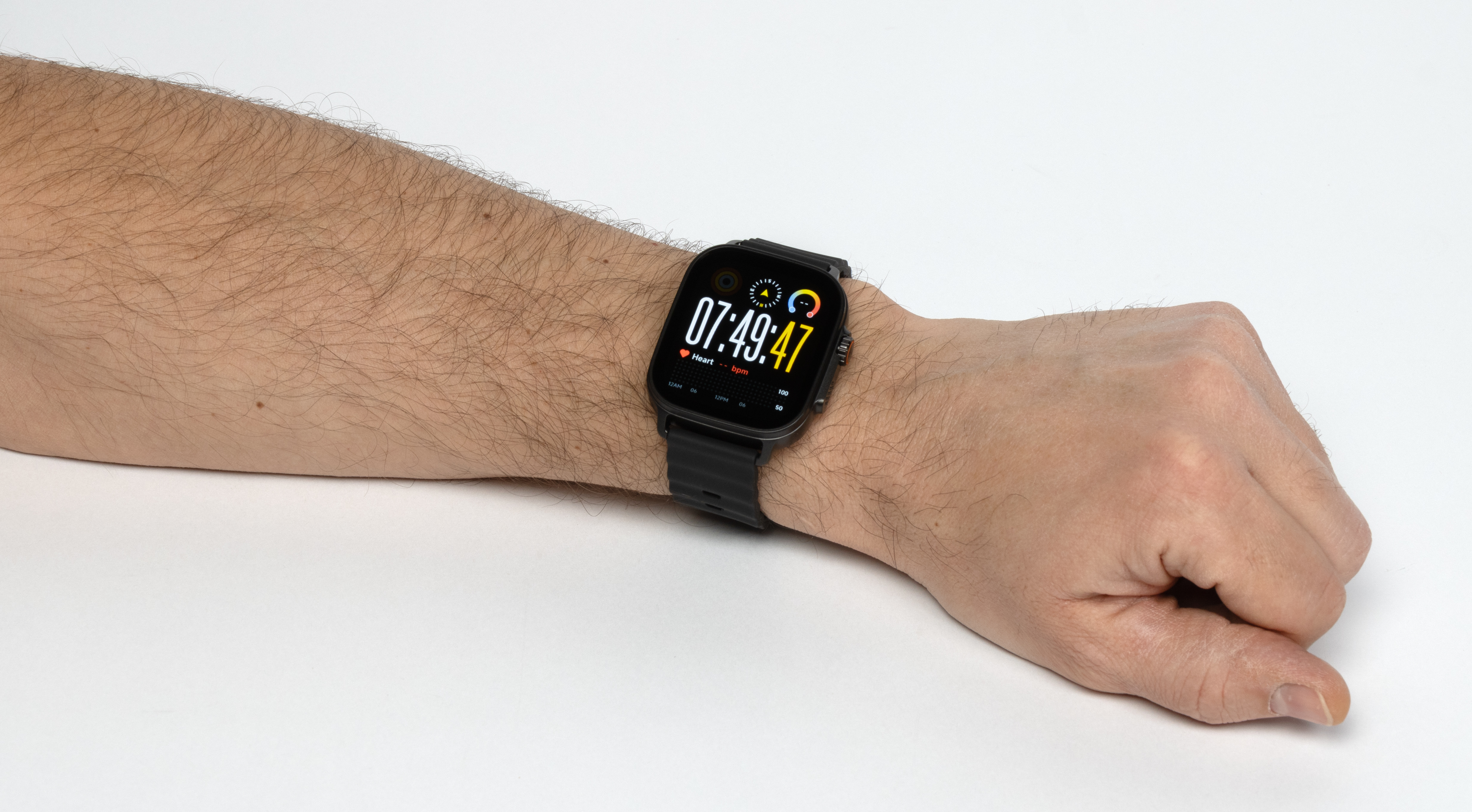 Часы доступны в единственном размере — с прямоугольным экраном 1,97″. Разрешение — 450×390, что дает неплохие 302 точки на дюйм. Давайте протестируем экран по нашей методике.