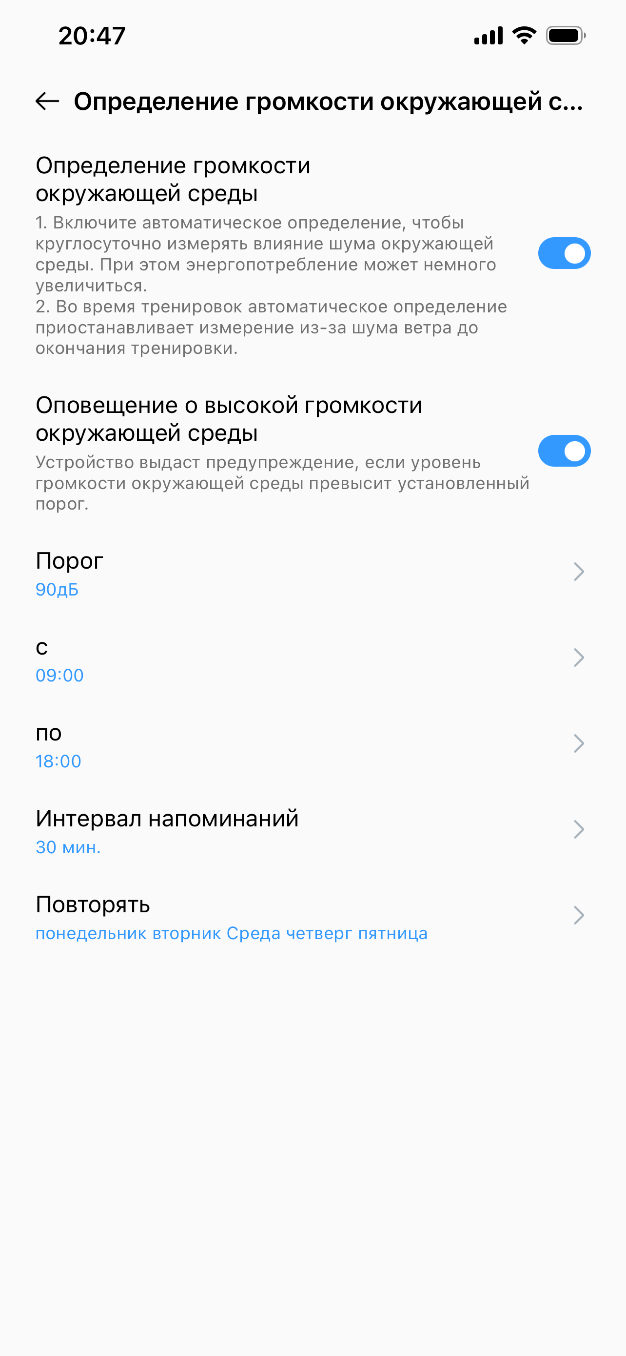 Из интересных возможностей — предупреждения о слишком громком звуке окружающей среды. Нечто подобное есть на Apple Watch. И не только на них, конечно, но в общем-то это прерогатива более дорогих моделей, чем Realme Watch 5.