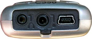 На нижней стороне корпуса, где базовый блок аппарата выступает наружу, расположены разъемы Mini USB, а также гнезда для зарядного устройства и гарнитуры hands free.