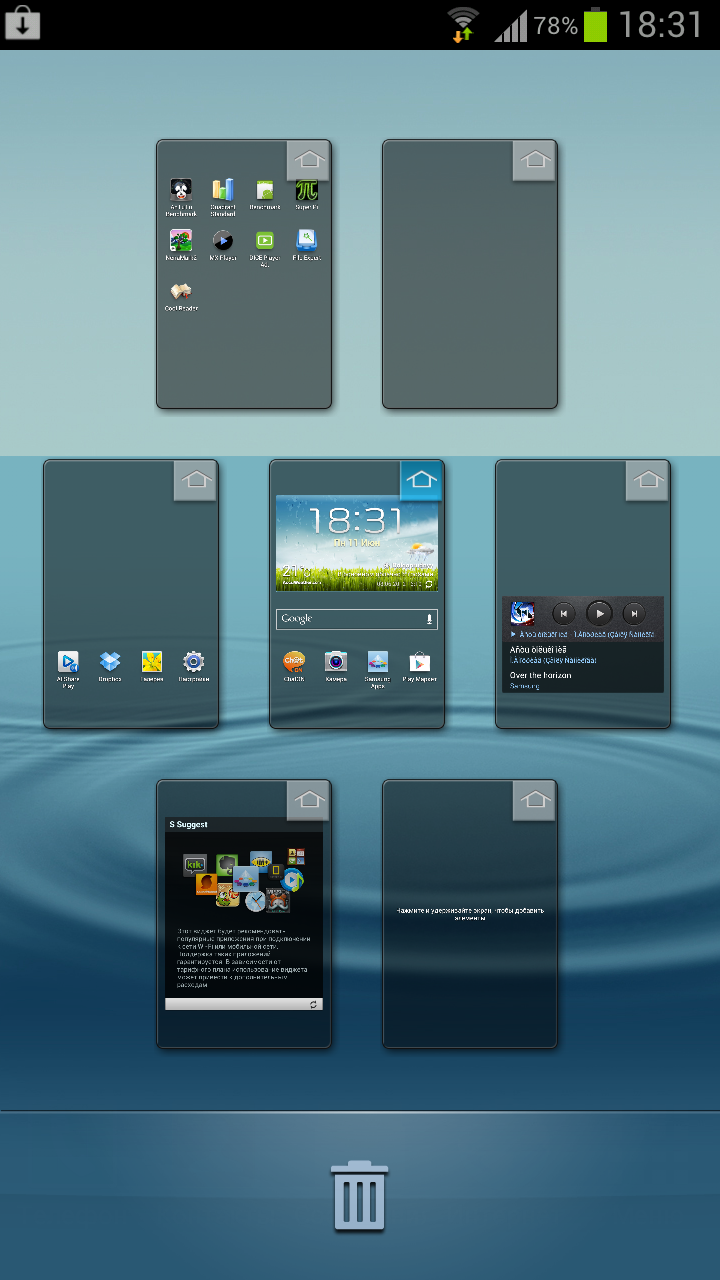 Изменения в оболочке основного экрана системы минимальные: виджет погоды объединился с часами, более плотное размещение иконок позволило разместить еще один значок в списке основных приложений. Список главных настроек коммуникатора в панели задач разросся и стал прокручиваться горизонтально.