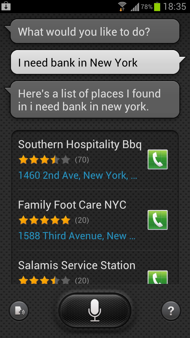 Упомянутый выше обзор iPhone 4S включает главу с описанием возможностей Siri и несколькими фразами, которые были заданы помощнику. Интересно было узнать, как с ними справится его конкурент (вопросы произносились по-английски).