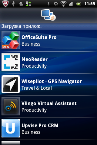Дальше в списке установленных приложений идут: WaveSecure и VirusScan — две программы-части антивируса McAffee, Игры от Popcap — программа для быстрой загрузки игр от соответствующего разработчика, Поиск расширений — поиск расширений для Timescape, Opera Mini — браузер, который не нуждается в представлении, Wisepilot — платная система спутниковой навигации, NeoReader — считыватель QR и штрихкодов, Touchnote — программа для отсылки фотографий в качестве открыток, Загрузка игр — аналог приложения Загрузка приложений, но ориентированный на игры.