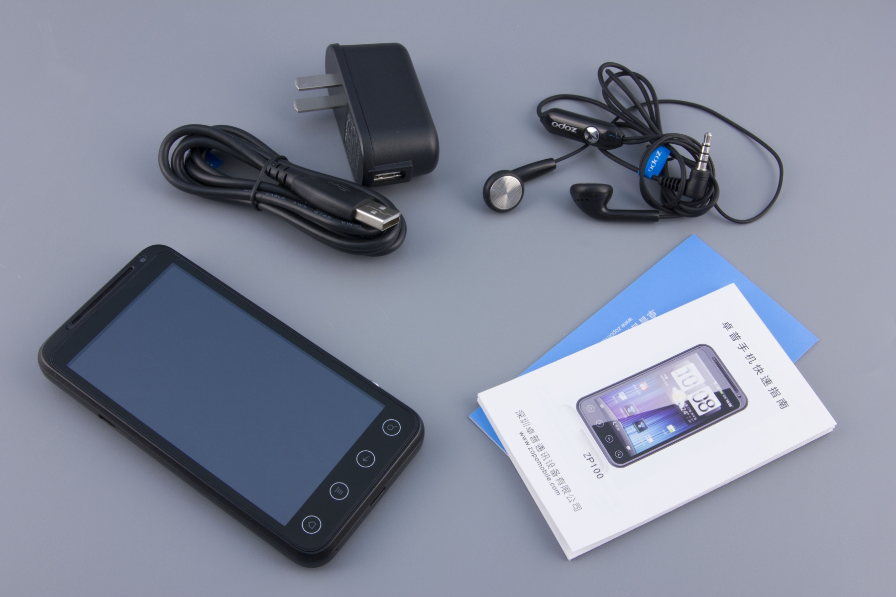 Как бы то ни было, но герой сегодняшнего обзора походит на известную модель HTC Evo 3D лишь внешне, да и то сходство весьма поверхностное. При ближайшем рассмотрении оказывается, что и материалы не те, и покрытие другое, и кнопки не похожи, да и сама аппаратная платформа внутри совершенно иная. В отличие от Qualcomm, SoC которой используется в HTC Evo 3D, здесь производитель остановил свой выбор на MT6575 местной MediaTek, что и неудивительно. Платформа, кстати, достаточно свежая, но о производительности поговорим чуть позже, сперва проведем внешний осмотр. Итак, встречаем: Zopo ZP100 — настоящий китайский Android-смартфон, «выловленный» на берегах Янцзы.
