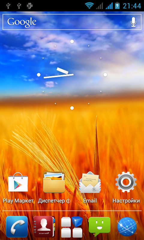 Забавно, но внешний вид операционной системы у коммуникатора на коробке и в реальности отличаются. На упаковке показан смартфон со стандартным расположением и внешним видом иконок ОС Android, в то время как разработчики их немного модифицировали. Если не обращать внимания на это косметическое изменение иконок, то в ZTE V889M установлена стандартная операционная система Google, версии 4.0.4 (Ice Cream Sandwich). Впрочем, есть еще одно отличие прошивки героя обзора от обычного Android: экран блокировки. У ZTE V889M на нем расположена круглая кнопка, которую нужно коснуться и удерживать для получения доступа к системе. В отличие от многих других экранов блокировки, используемая в герое обзора разновидность не позволяет получить быстрый доступ к приложениям коммуникатора и его камере. Она также отличается некоторой нерасторопностью работы и неудобством в использовании — удерживать касание надо ощутимый промежуток времени, а кроме того, палец может попросту соскользнуть или сдвинуться, и в результате все придется повторять заново.